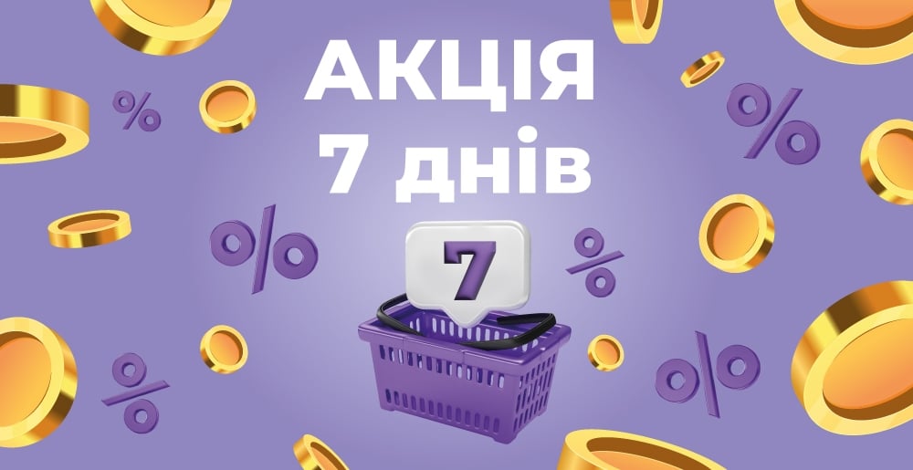 Акція "7 днів": Щотижневі пропозиції на різні категорії товарів, що включають напої, перекуси та інші популярні продукти. Знижки помогають значно зекономити.