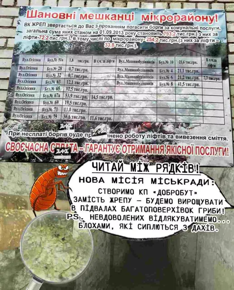 «Шановний Олеже Миколайовичу, ми, мешканці будинку 67-а, звертаємось до Вас з проханням зобов’язати управителя (ВК ЖРЕП) навести лад в будинку. В зв’язку з недобросовісним виконанням послуг по утриманню будинку та прибудинкової території наш будинок перетворився в будинок жахів, або в такий собі пам’ятник недбальству. Двері в підвал будинку не замкнуті, в підвалі гниє сміття, цілий розсадник грибків та цвілі, які висівають свої спори по всьому будинку. На горищі будинку повно сміття, в якому завелись блохи. Двері на горище не замкнуті, вільний доступ на горище не тільки бродячим котам. В теплу пору року в під’їздах стійкий запах гнилі. Крім цього будинок має дві тріщини і з цим треба щось робити. Періодично в підвалі горить сміття (останній раз викликали пожежників 25.05.2017). Ніяких протипожежних заходів жодного разу не проводилось.