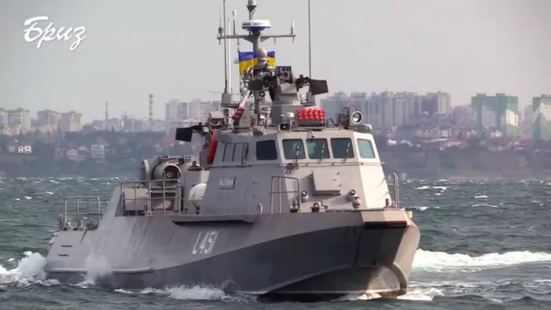 Катери перевіряли роботу авіаційних реактивних систем залпового вогню з некерованою ракетою С-8. Попри шторм в 2-3 бали, ракети вразили берегову ціль на відстані в кілька кілометрів.