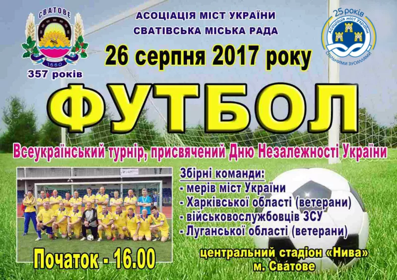 Організатори турніру – Асоціація міст України та Сватівська міська рада. Початок футбольного турніру о 16.00.