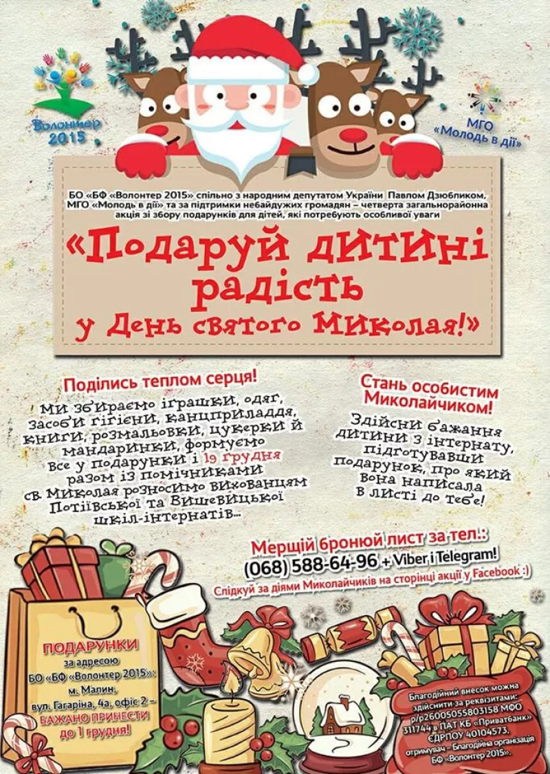 Тиждень тому вчетверте стартувала благодійна акція "Подаруй дитині радість у День святого Миколая", де кожен бажаючий може забронювати і виконати листа, який написала дитина святому Миколаю.