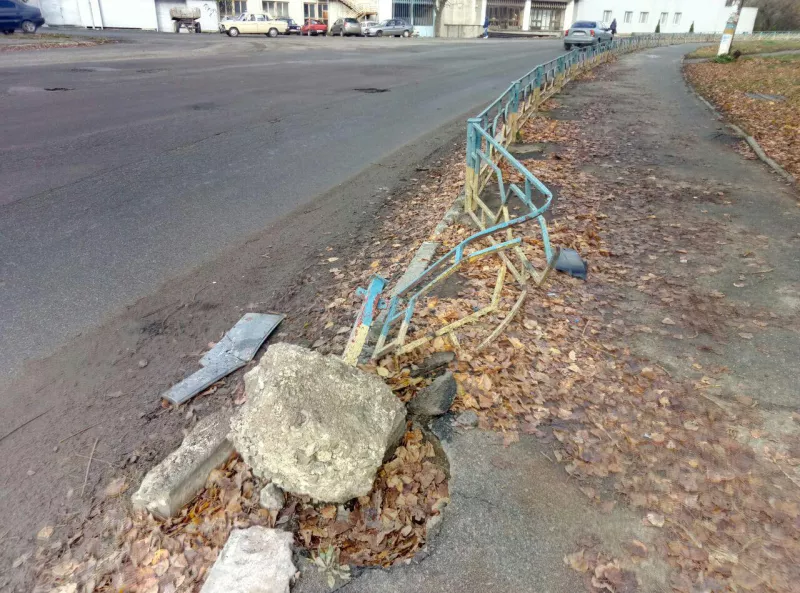 Вже тиждень, як на вулиці Гагаріна, поблизу зупинки перед фабричним мостом, утворилося провалля. Глибоченьку діру в асфальті попід тротуаром акуратно «залатали» каменем. Судячи із зігнутої залізної огорожі, там сталася аварія. Причиною послугувало провалля чи таки камінь — не відомо. Цікавить інше. За тиждень жодна служба не ліквідувала перешкоду з проїжджої частини й, очевидно, не збирається цього робити.
