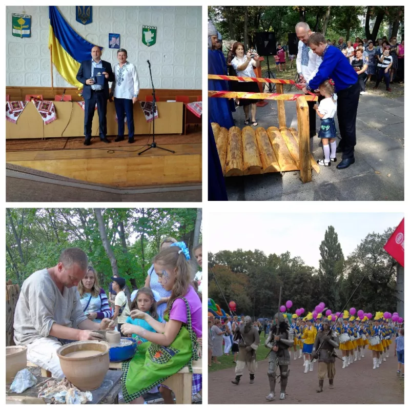 Розпочалися святкові заходи з урочистостей, які відбулися у великій залі райдержадміністрації. Під час них пролунав невеликий звіт від мера Олексія Шостака. І, звичайно, не обійшлося без нагороджень. Грамоти, подяки та цінні подарунки від міського голови Олексія Шостака, народного депутата України Павла Дзюблика, головного радикала Житомирської області Юрія Забели отримали малинчани, які внесли значний внесок у розвиток нашого міста. А це і лікарі, і волонтери, і громадські активісти, і працівники лісової галузі, і приватні підприємці, і керівники підприємств. Також звання «Почесний громадянин міста Малина» отримала керівник зразкової капели бандуристів «Веснянка» Світлана Майданович. Нікого не залишив байдужим і виступ волонтерів Корпусу миру із США, який зал сприйняв гучними оплесками.