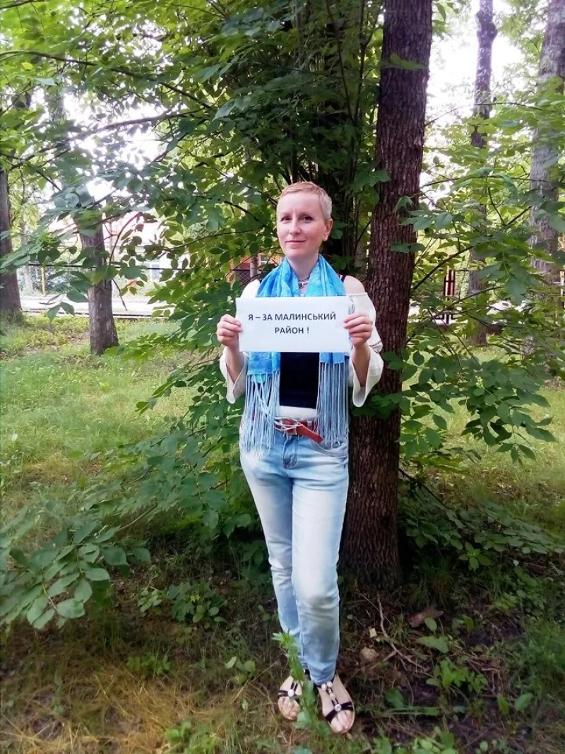 "Малинчани, наша активність у соцмережах з приводу створення в області 5-го Малинського району зараз має велике значення. Тому вирішила запустити флешмоб: Я - за Малинський район! Приєднуйтеся. Ставте хештег #ЯзаМалинськийРайон і викладайте власні фото", — зазначила Ольга у своєму дописі.