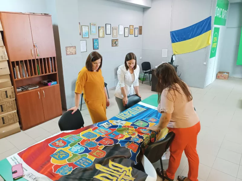 Це один із наймасштабніших проєктів, що реалізують вишивальниці під час військового стану. В кожному з містечок, навчальних закладах, музеях, волонтери пліч-о-пліч вишивають бісером полотнище