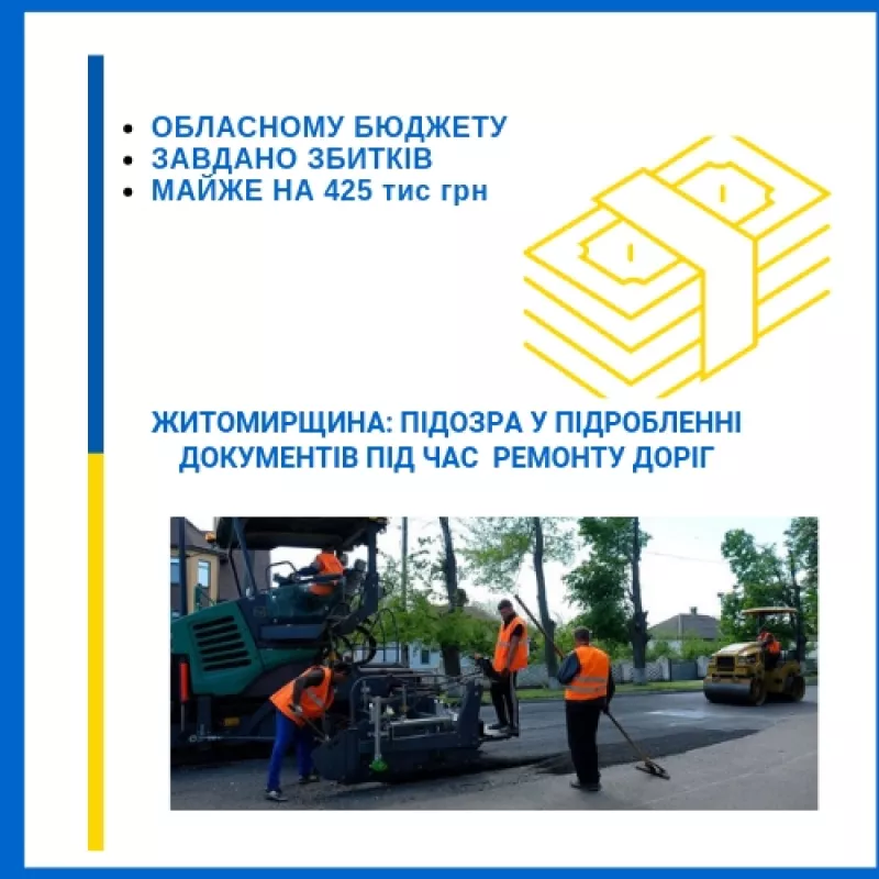 Йдеться про те, що за результатами відкритих тендерних торгів, між Службою автомобільних доріг у Житомирській області та товариством з обмеженою відповідальністю у 2017 році укладено договір про виконання ремонтних робіт у чотирьох селах Малинського району за бюджетні кошти на загальну суму майже 1,7 млн грн.