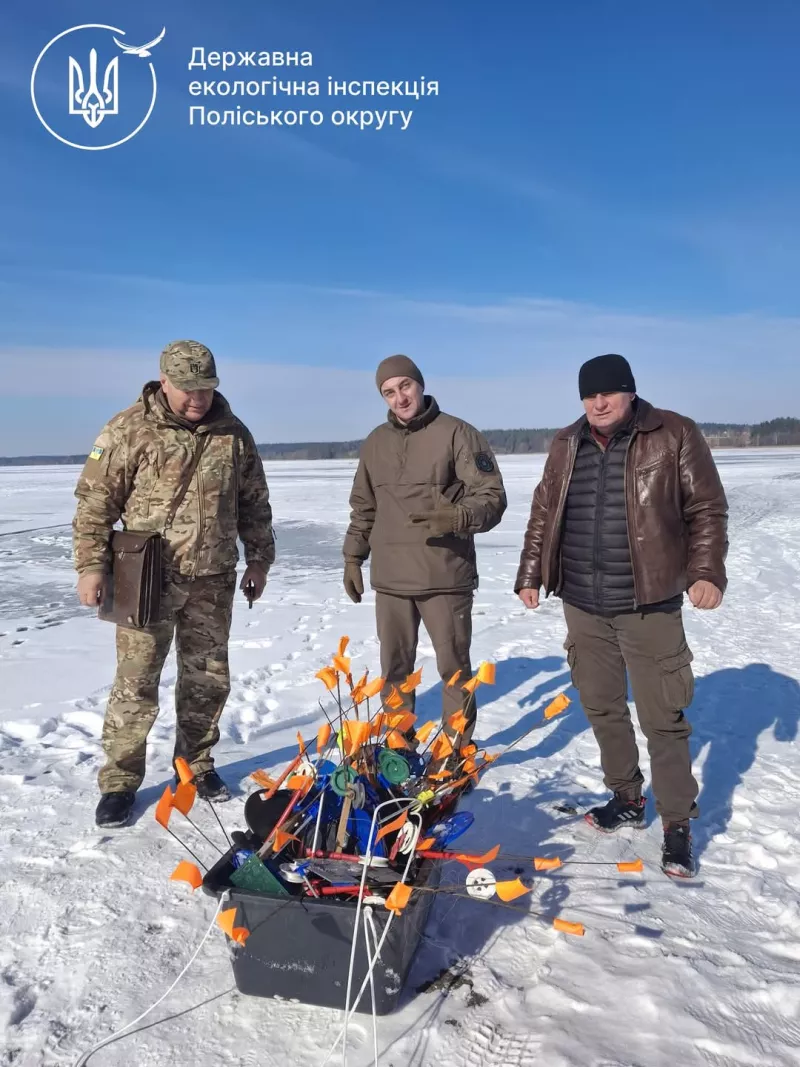 Крім того, інспектори виявили 74 безгосподарські жерлиці, незаконно встановлені в зимувальних ямах. На гачках знаходилась наживка, призначена для ловлі щуки. Усі виявлені знаряддя лову були вилучені, про що складено відповідні акти.