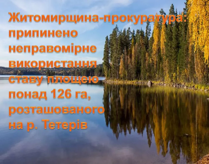 Бердичівською місцевою прокуратурою вжито заходів представницького характеру та припинено неправомірне використання ставу площею понад 126 га, розташованого на р. Тетерів.