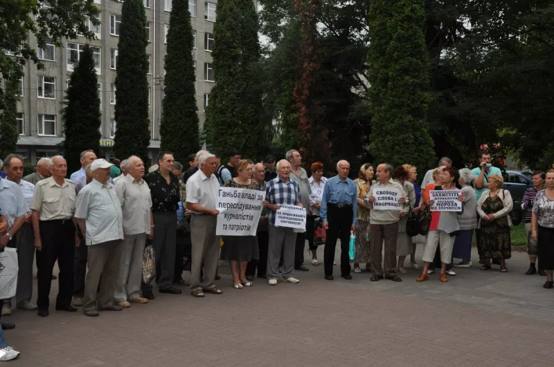 «Преследование журналистов преступление, но защитим журналиста Мороза от преступников!», — с этими лозунгами больше сотни Житомирян вышли на защиту зверски избитого журналиста Руслана Мороза к городскому отделению полиции в Житомире.