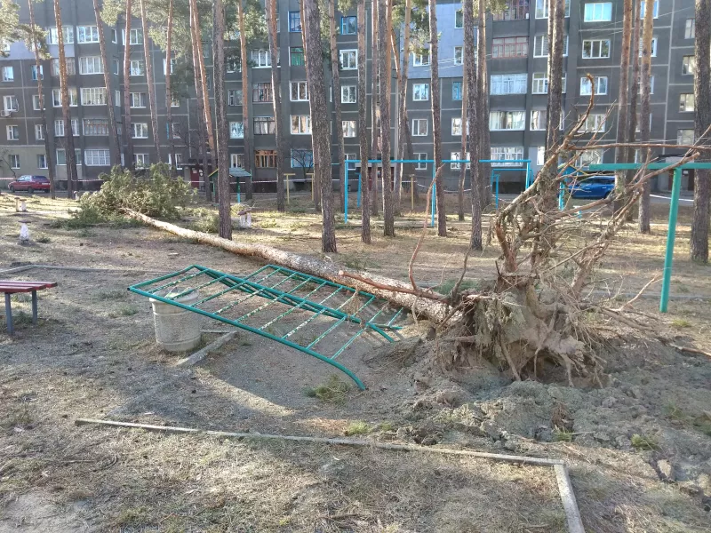 Негода, яка вчора вирувала у Малині, хоч і була короткочасною, але все ж встигла зробити своє руйнівну справу. Поламані, а то й зовсім вирвані з коренем дерева — один з наслідків сильного вітру, що "пройшовся" по Малинщині. Ось так обійшлася негода з деревами у мікрорайоні "банкнотки".