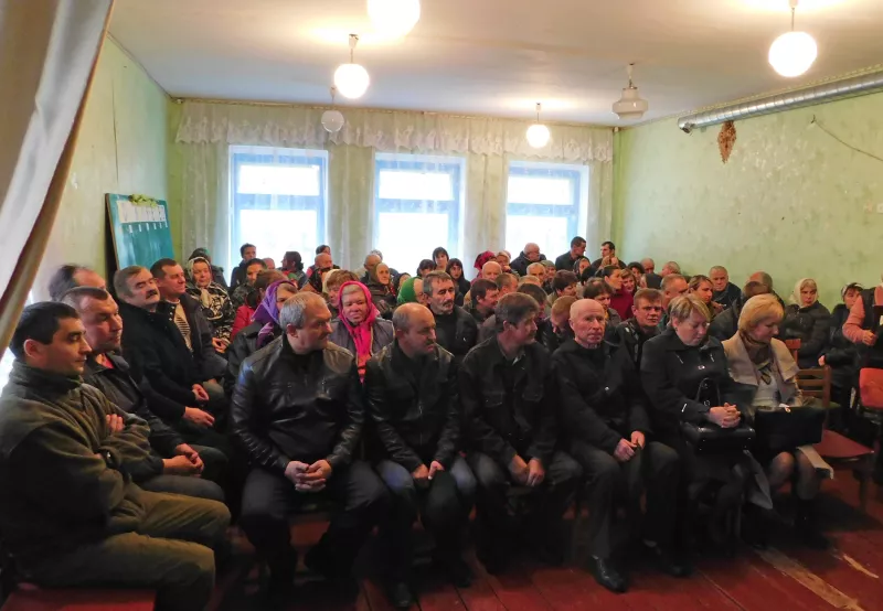 З цього приводу у вівторок, 17 жовтня, в Будо-Вороб’ях провели загальні збори жителів сільради. З півтори сотні селян, на захід прийшли понад 80. Про те, що на схід села їх зібрали неспроста, люди зрозуміли із зачитування прізвищ і посад запрошених гостей. А це, зокрема, перший заступник голови Малинської РДА Олексій Кучинський, заступник голови райради Руслана Ничипоренко, керівник апарату РДА Валентина Жура, виконуюча обов’язки начальника відділу держкомзему в Малинському районі Світлана Третяк, спеціаліст із питань запобігання та виявлення корупції РДА Тетяна Семененко, спеціаліст із юридичних питань райради Олена Тиднюк, головний лісничий ДП «Малинське лісове господарство» Василь Маєвський, директор ДП «Малинський лісгосп АПК» Володимир Антонюк, головний лісничий і провідний юрист-консультант підприємства Борис Лобачевський та Іван Прудніков, заступник начальника Малинського ВП Володимир Савченко.