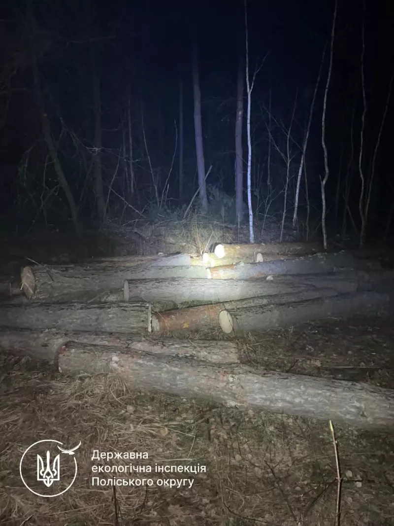 Під час планового рейду фахівці Державної екологічної інспекції Поліського округу виявили у лісовому масиві Ворсівського лісництва автомобіль "Iveco" та незаконно зрізані дерева. Огляд місця події показав, що порушник вирубав 46 дерев різних порід - сосну, дуб та березу.
