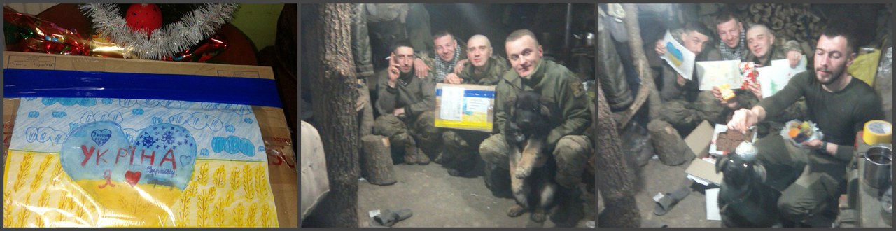 Напередодні нового року, а саме в новорічну ніч, наші земляки з першої танкової бригади отримали подарунки від малинчан. Дякуємо діткам та керівнику з благодійної організації "Захист дітей Чорнобиля" за ці смаколики. Для бійця немає нічого кращого, як отримати частинку милосердя, доброти, тепла, щирості від своїх земляків. У кожному бліндажі хлопці розвішують дитячі малюнки, ялинка прикрашена виробами, які зробили діти. Листи з побажаннями солдати носять, як оберіги під серцем...