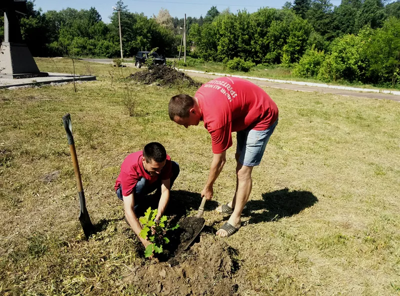Так, сьогодні, в День Героїв, біля газового господарства висадили ще з десяток дерев і кущів, замінивши тим самим дерева, що не прийнялися із минулої осені.