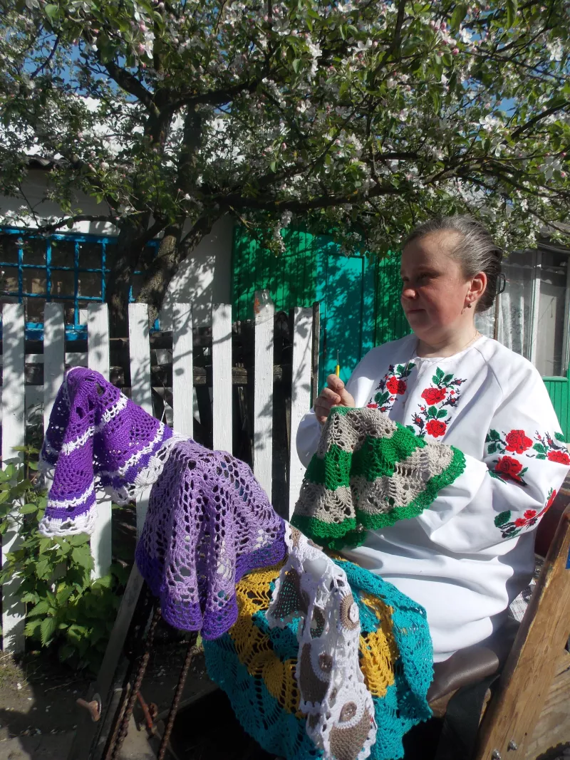 -- Не звикла плакати про свої життєві негаразди, -- зізнається молода жінка. – Бо нічого з того не вийде, окрім болю, плачу, нервів. Тому й вирішила, щоб відволіктися від таких «чорних» думок років сім тому взятися за мистецтво. Бажання творити щось власними руками було у дівчини ще зі шкільної парти. А підкріпила належні знання з вишивання Олена у своєї мами, досвідченого культпрацівника Людмили Петрівни та своєї тітки Тамари Антонівни Мінчук, котра також не розлучається з нитками та голками… Тому й до сьогоднішнього дня жінка полюбляє «пропасти» на декілька годин у своїй затишній кімнатці, щоб «почаклувати» над черговою вишитою картиною чи в’язанням. Сюжети бере з Інтернету, вивчає й фахову літературу, не відмовляється й від слушної поради мами. А скільки азарту й енергії, а головне – любові вкладає вона, коли сідає за одне з найулюбленіших занять – виготовлення різноманітних казкових та мультиплікаційних персонажів із … морських ракушок. Працювати полюбляє Олена Володимирівна без зайвих очей, сама. Інколи може ввімкнути й заспокійливу музику. Ці хобі жінці дозволяють повністю розслабитись, зануритись у красу й складність своїх робіт. Більше сотні робіт вже подарувала рідним, близьким та знайомим. Кожна з них – це ніби своєрідний оберіг від зла, ненависті, негативної енергії тощо. У кожну роботу Олена вкладає особливу позитивну енергетику, любов і натхнення.