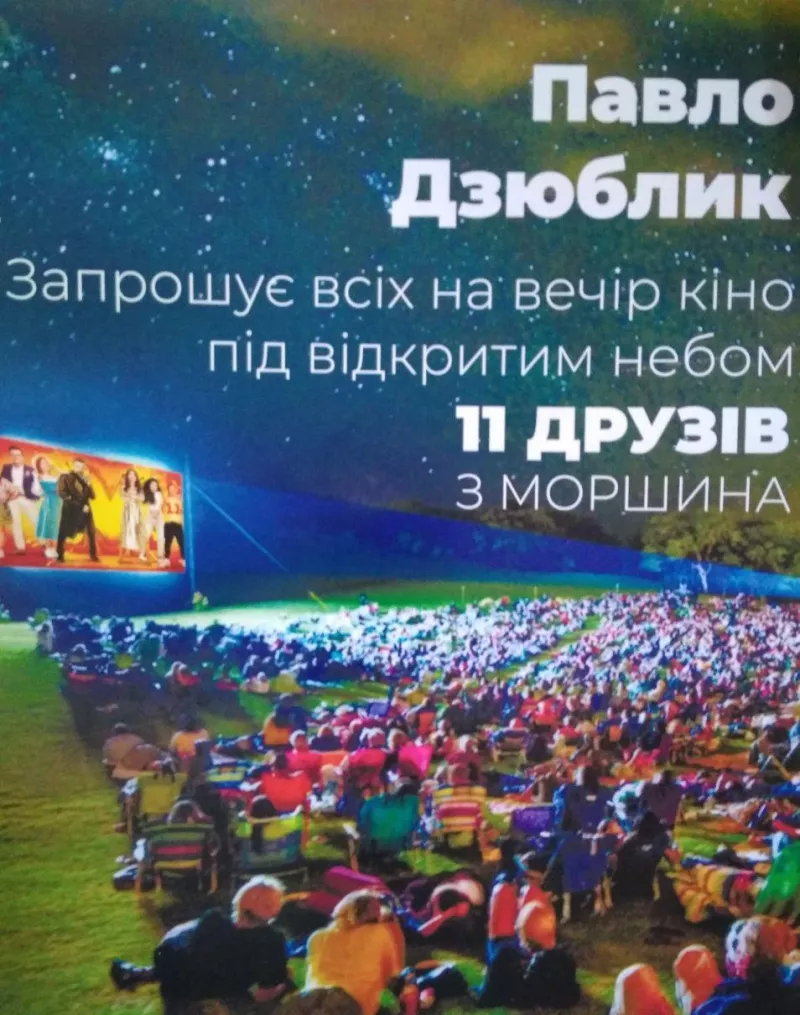 Народний депутат України Павло Дзюблик запрошує малинчан переглянути сімейну українську комедію "11 друзів з Моршина". Перегляд відбудеться о 21:30 на стадіоні "Авангард", що у міському парку культури та відпочинку, після благодійного конкурсу краси "Міні-Міс Малин 2019".