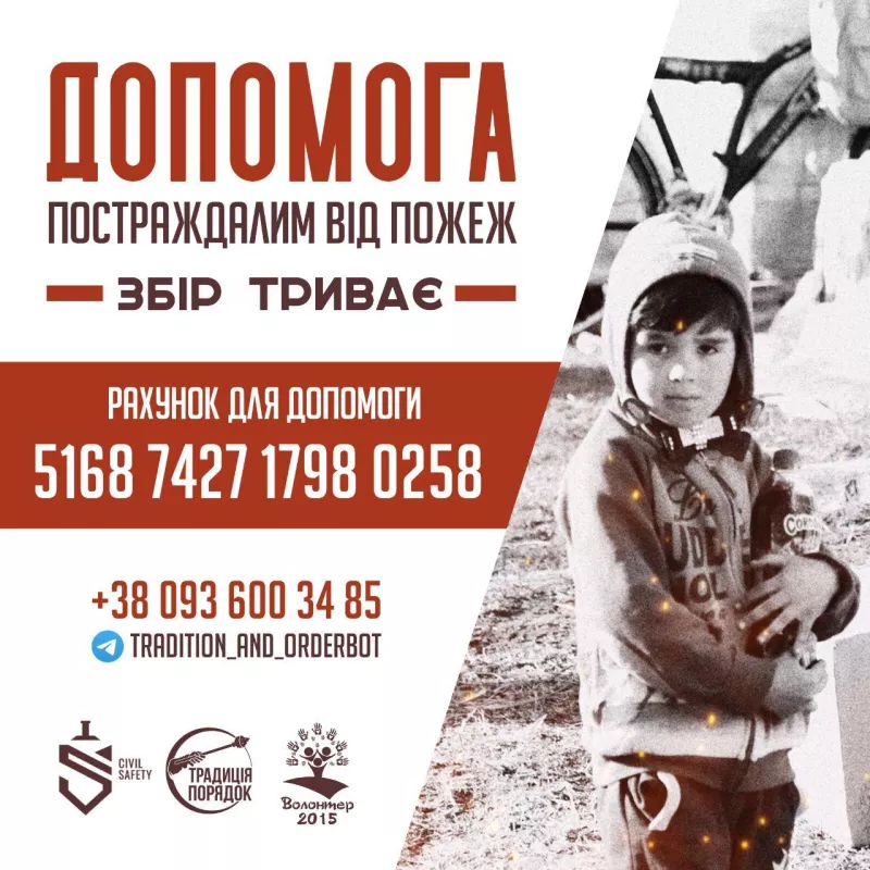 Наразі продовжує тривати збір коштів для допомоги жителям сіл півночі Житомирщини, які постраждали віж масштабних пожеж. Мета: допомогти людям відновити знищені вогнем домівки та повернутися до нормального життя.