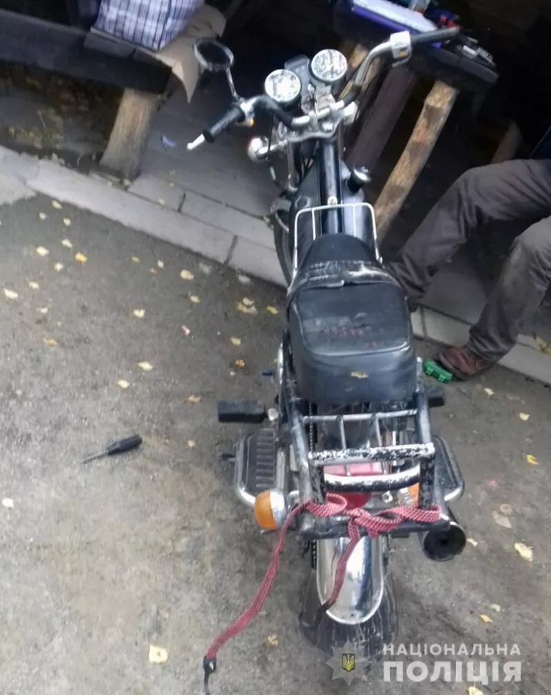 "Уранці 5 жовтня до Малинського відділення поліції звернувся 54-річний житель смт Гранітного. Чоловік розповів, що минулої доби залишив свій мопед «Delta» у гаражі, а згодом виявив зірваний замок на приміщенні та зникнення транспортного засобу. На місці події працювала слідчо-оперативна група поліції. За наявною інформацією, правопорушник залив у мопед пальне, що знаходилося у гаражі, та поїхав на ньому геть. У ході проведених заходів оперативники карного розшуку отримали інформацію про появу підозрілого чоловіка на одній з автозаправних станцій неподалік селища. Відтак поліцейські вирушили для перевірки інформації. На автошляху вони помітили подорожнього на мопеді, що за описом був схожий на викрадений. Його зупинили та з’ясували, що 42-річний житель Радомишльського району дійсно їхав на чужому двоколіснику. Чоловіка доставили до відділку поліції. У нього вилучили транспортний засіб та сумку з інструментами", — йдеться у повідомленні.