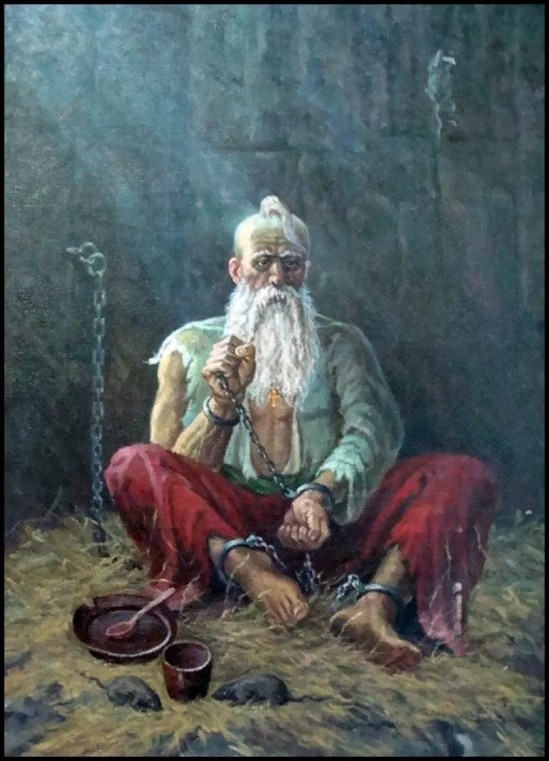 А тепер уявіть собі цю картину: "Коли кошового перевезли з Прядильної камери в інше приміщення, то від нього залишилося в камері більше як на два аршини нечистот. Просидівши в тюрмі такий довгий час, він здичавів, став похмурий і втратив зір; в нього, як у звіра, виросли великі нігті, довга борода і весь одяг на ньому, каптан з ґудзиками розпався на лахміття і звалювався з плечей..."