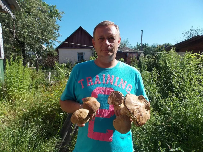 Родич Ю. Єщенка Ростислав Бузенко демонструє грибний улов.