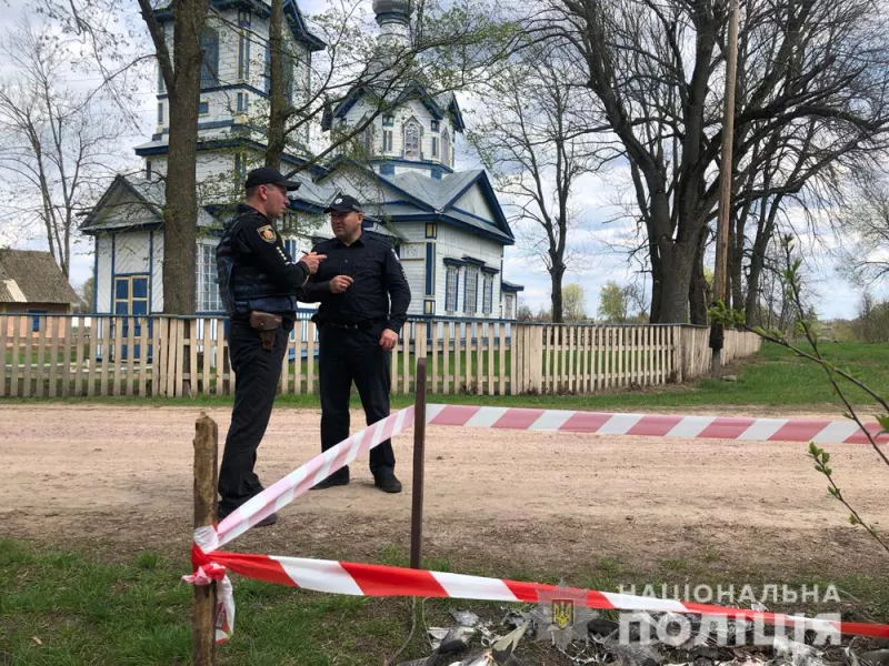 До Радомишльського відділення поліції надійшло повідомлення про пошкодження у результаті авіаудару Свято-Хрестовоздвиженської церкви у с. Новій Буді. Працівники слідчо-оперативної групи зафіксували усі обставини та з’ясували, що під час події було травмовано також місцевого жителя. Усі заходи проводились під процесуальним керівництвом окружної прокуратури.