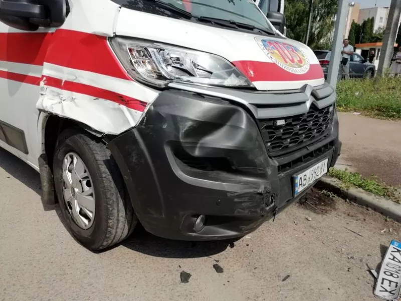 Під час руху на світлофорі, швидка намагалася виїхати на зустрічну смугу і продовжити рух, при цьому всі інші автомобілі зупинялися та пропускали її. Проте водій фольксвагена, повертаючи до лікарні, не помітив швидку.
