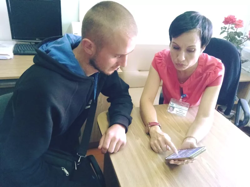 Для практичного використання учасникам АТО фахівці служби зайнятості розробили мобільний додаток «Довідник послуг та пільг учасника АТО», який містить інформацію про пільги, можливу реабілітацію, правову допомогу, шляхи працевлаштування, телефони «гарячих ліній» тощо. З метою наближення соціальних послуг фахівці Малинської міської філії центру зайнятості консультують військовослужбовців. Так, сьогодні, Ганна Кучинська, завідувач сектору активної підтримки безробітних, ознайомила пана Юрія, який звернувся до служби зайнятості за сприянням у працевлаштуванні, з інноваційним онлайн-довідником послуг та пільг особам вищезазначеної категорії. Спільно із начальником відділу надання соціальних послуг Наталією Кучинською оперативно переглянули наявні вакансії охоронника, оскільки саме в охоронній фірмі бажає працювати Юрій. Результатом пошуку задоволені чотири актуальні пропозиції які внесені до індивідуального плану працевлаштування.