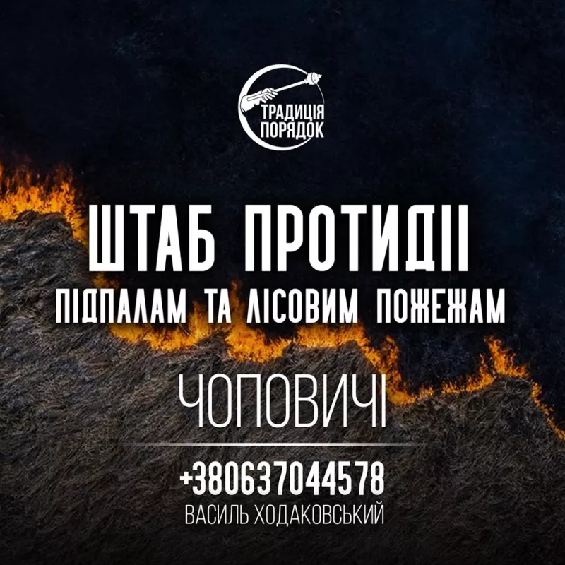 Традиція і Порядок організовує штаб протидії підпалам та лісовим пожежам в Житомирській області, а саме в Чоповичах. Населений пункт оточений лісами, тому знаходиться в зоні небезпеки.