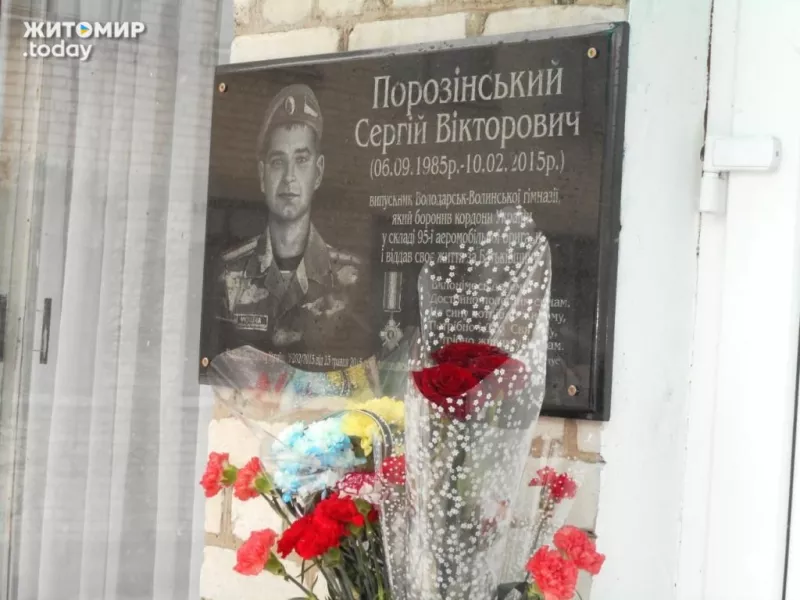 У День Збройних сил України в Хорошеві на фасаді місцевої гімназії з’явився пам’ятний знак бійця 95-ї окремої аеромобільної бригади Сергія Порозінського.