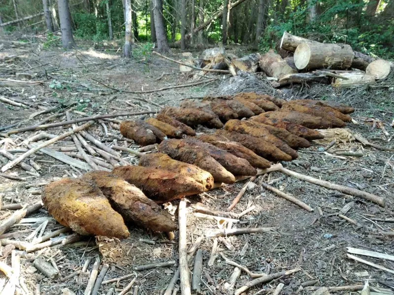 "На небезпечне відлуння війни натрапили місцеві лісівники під час санітарної рубки лісу. Вони помітили, що у невеликому заглибленні з-під землі стирчать декілька підозрілих металевих предметів. Про це вони одразу ж сповістили рятувальників. Прибулі за викликом фахівці ДСНС обстежили прилеглу територію та виявили загалом 28 артснарядів калібром 105 мм", — йдеться у повідомленні.