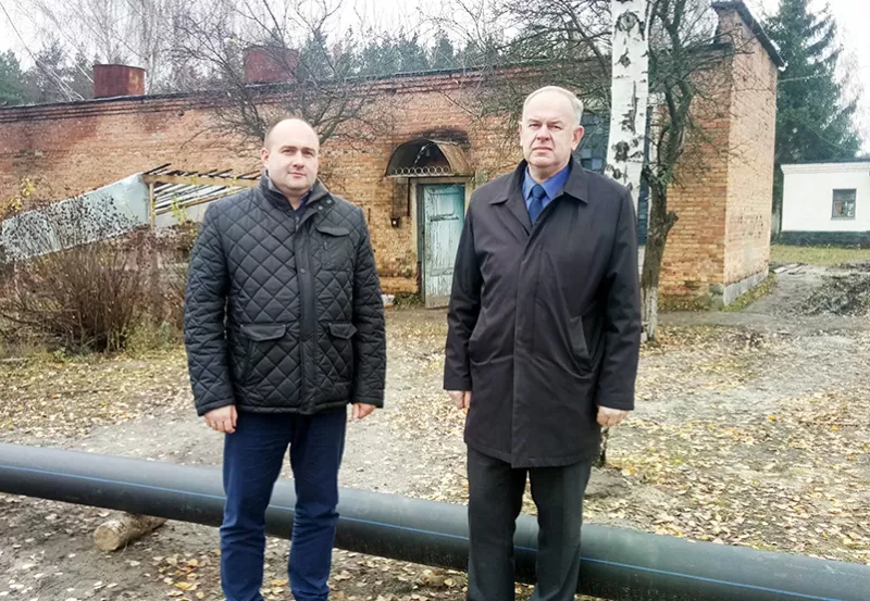 Майже місяць бригада робітників ПП «Тепло-Монтаж» із Чернігова працює незалежно від погодних умов і без вихідних: прокладають траншею, міняють давно зношені сталеві труби на нові — поліетиленові, діаметром 250 міліметрів. Їх привезли нещодавно, але нині прокладено вже 500 метрів водогону, із запланованих 1,2 кілометра до кінця року (від очисної станції до магазину «Морячка»). Потім облаштують нові колодязі для подальшого перепідключення споживачів. Після завершення монтажу трубопроводу на цій ділянці відновлять дорожнє покриття.