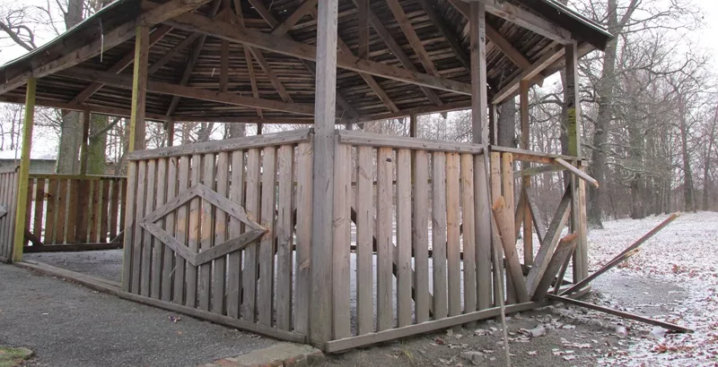 Цього разу «відвідувачі» поламали альтанку, яку лише навесні відновлювали працівники лісгоспу АПК. До того ж численні написи на стінах свідчать про те, що рівень безкультур’я окремих малинчан аж надто високий. Не менш страхітливий вигляд має нині й альтанка, що знаходиться поряд. Звісно, обидві буде вкотре відновлено комунальниками, але нащо трощити? Незважаючи на наявність урн і контейнерів, не меншає у парку й сміття.