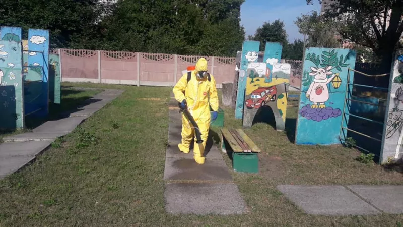 27 липня рятувальники 13-ої ДПРЧ (м. Малин) здійснили дезінфекцію території та приміщень ДНЗ «Веселка» та навколишніх магазинів.