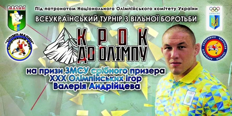 Під патронатом Національного Олімпійського комітету України та за підтримки Малинської міської ради 24-25 грудня відбудеться V ювілейний турнір з вільної боротьби «Крок до Олімпу» на призи ЗМСУ срібного призера XXX Олімпійських ігор Валерія Андрійцева.
