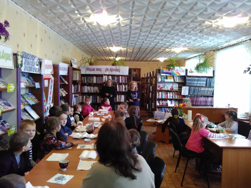 Перед початком майстер-класу діти у віршованій формі привітали весь колектив бібліотеки та ще особливим подарунком листівкою виконаною своїми руками.