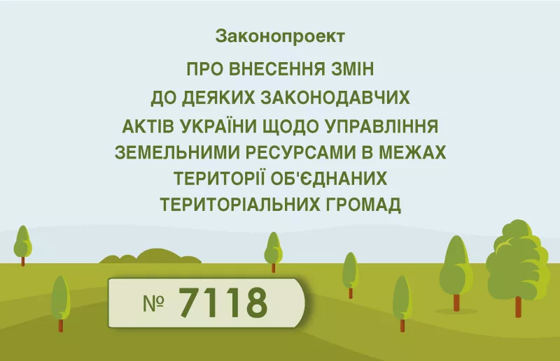 18 вересня у Верховній Раді України зареєстровано Проект Закону про внесення змін до деяких законодавчих актів України щодо управління земельними ресурсами в межах території об'єднаних територіальних громад № 7118.