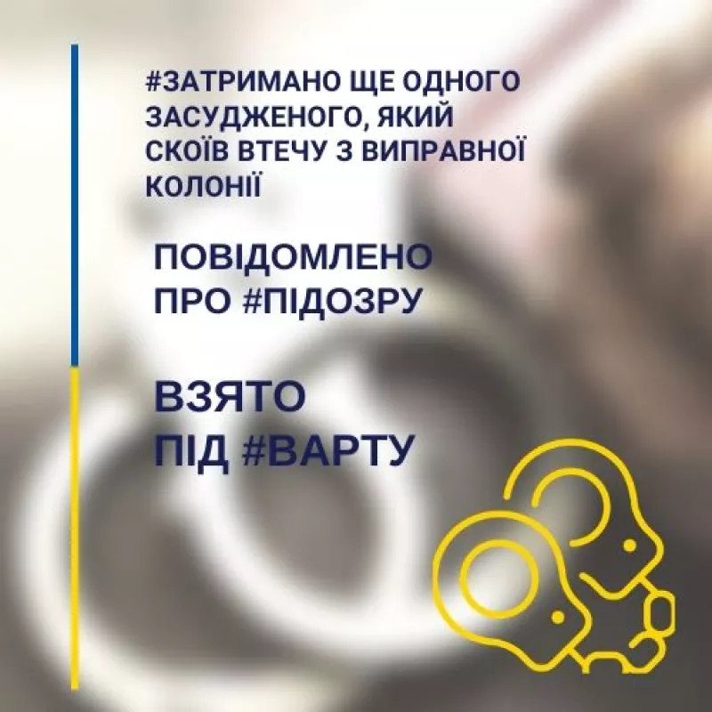 Сьогодні, 13 грудня, завдяки злагодженим діям прокуратури Житомирської області та оперативних працівників державної установи «Райківська виправна колонія (№73)» затримано ще одного засудженого, який скоїв втечу із виправної колонії.