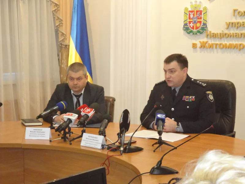 У брифінгу взяли участь заступник прокурора Житомирської області Віталій Мякішев та начальник Головного управління Національної поліції в Житомирській області В’ячеслав Печененко.