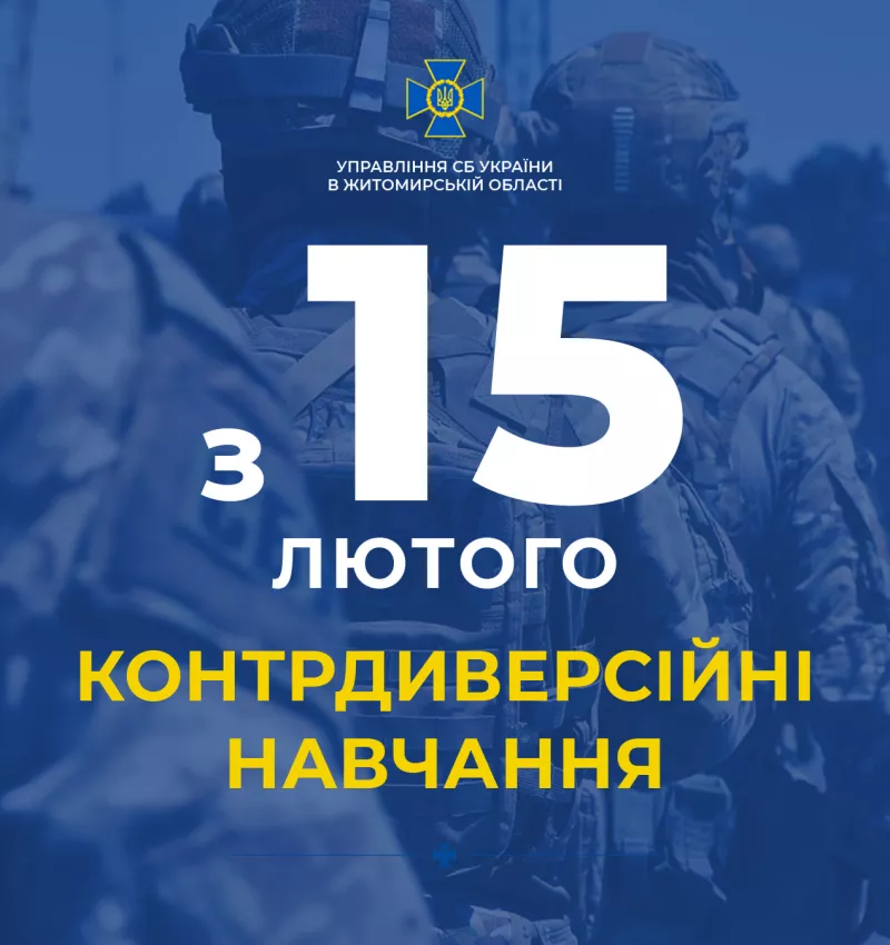 15 лютого на Житомирщині стартували контрдиверсійні навчання за участі координаційної групи Антитерористичного центру обласного управління СБУ.
