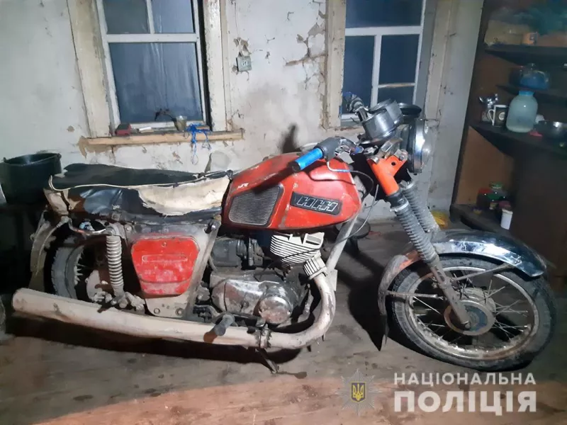 "Увечері 21 листопада до Хорошівського відділення поліції надійшло повідомлення про незаконне заволодіння мотоциклом, що належить 32-річному жителю району. На місці події працювала слідчо-оперативна група поліції. Як з’ясувалось, власник мотоцикла «ИЖ Планета 5» разом зі знайомим, який звернувся з проханням скористатися транспортним засобом, поїхали до смт Іршанська. Потому чоловіки розійшлися у власних справах. Мотоцикл лишався поблизу місцевої крамниці. Згодом власник, повернувшись, не виявив свого транспортного засобу та звернувся до поліції. З’ясовуючи обставини події, поліцейські перевірили й 20-річного жителя району, який разом із заявником їздив до селища. За місцем проживання застали молодика та виявили транспортний засіб. Він вже відокремив коляску від двоколісника, який залишив у себе в подвір’ї. Парубок визнав свою провину, мотоцикл у нього вилучили", — йдеться у повідомленні.