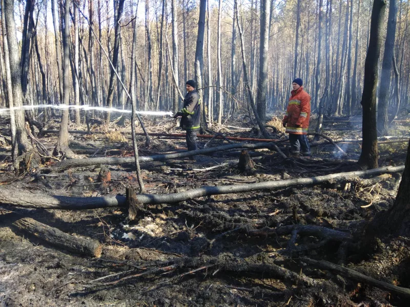 Нині весь осередок пожежі обораний, проте є місця, де є ризики поширення вогню. Це болота із заростями очерету, через котрі не зміг пройти трактор. Таким ділянкам лісівники приділяють особливу увагу. Нині на локалізації вогню працює понад 200 осіб особового складу та близько 40 одиниць техніки.