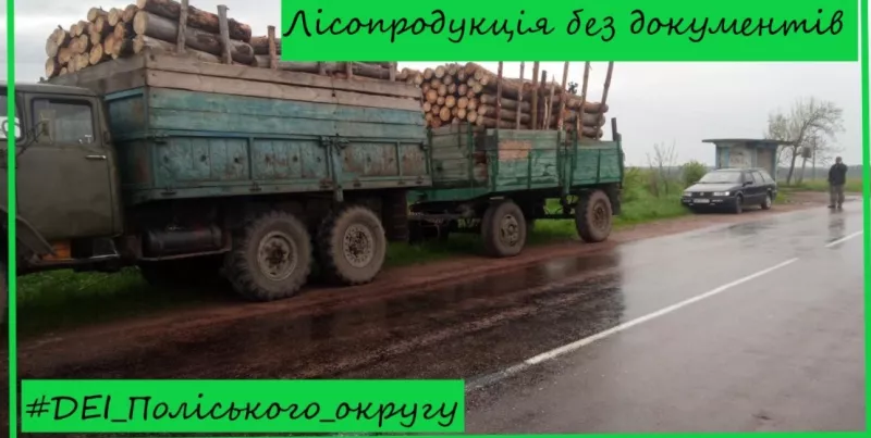Сьогодні, на території Радомишльської територіальної громади, що на Житомирщині під час рейдових заходів зупинено автомобіль з причепом завантажений лісопродукцією породи сосна, в загальній кількості близько 16 метрів кубічних, документи які б вказували походження деревини – відсутні.