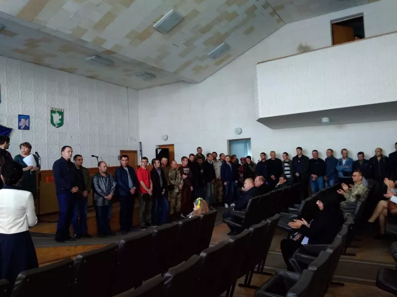 Сьогодні, 12 жовтня, у великому залі райдержадміністрації відбулися урочистості до Дня захисника України. У залі були присутні кілька десятків наших земляків, воїнів, які пройшли горнило війни на Сході. Для них лунали слова привітання від голови Малинської РДА Дмитрія Кисельчука, голови Малинської районної ради Михайла Левковця, заступника військового комісара Малинського об’єднаного військового комісаріату Сергія Ткаченка, волонтера Юрія Мельника.