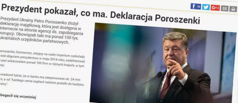 Не вдалося знайти публікацій про це на сайтах провідних польських видань Gazeta Wyborczaта Rzeczpospolita. Тижневик Wprost у невеликій статті "Десятки мільйонів доларів, понад 100 компаній. Президент показав свої статки" головну увагу приділяє Петру Порошенку. Короткий матеріал з цитуванням президента і без оцінок завершується нагадуванням, що електронне декларування є вимогою Міжнародного валютного фонду; так само лише інформацією агенцій про статки Порошенка обмежився сайт мовника TVN24.