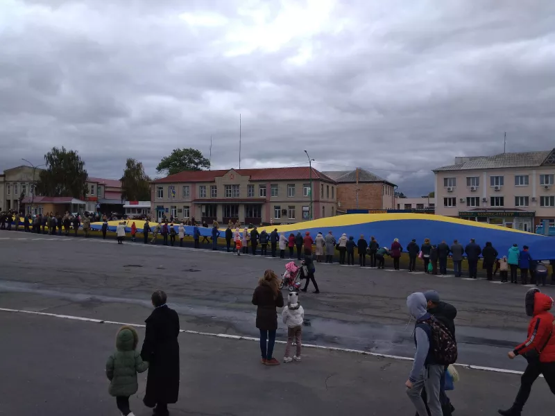Але найвидовищнішим дійством та своєрідною родзинкою свята було розгортання на центральній площі Малина найбільшого прапора України.