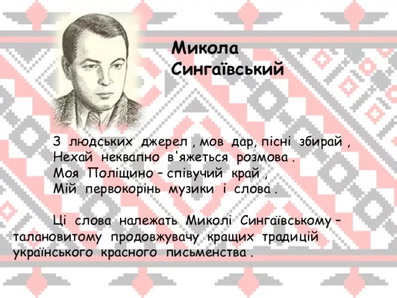 Справді, нерідко, говорячи про поета Миколу Сингаївського, найперше згадують «Чорнобривці». Пісня на музику В.Верменича стала не просто народною, вона вже, якщо можна так висловитися, «міжнародна». Перетнувши гори-ліси, моря-океани, вона лунає різними мовами у Франції й Канаді, Південній Америці, ба навіть у Японії.