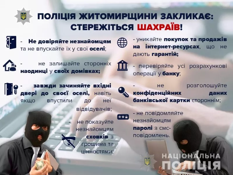 - Не довіряйте незнайомцям та не впускайте їх у свої оселі.
