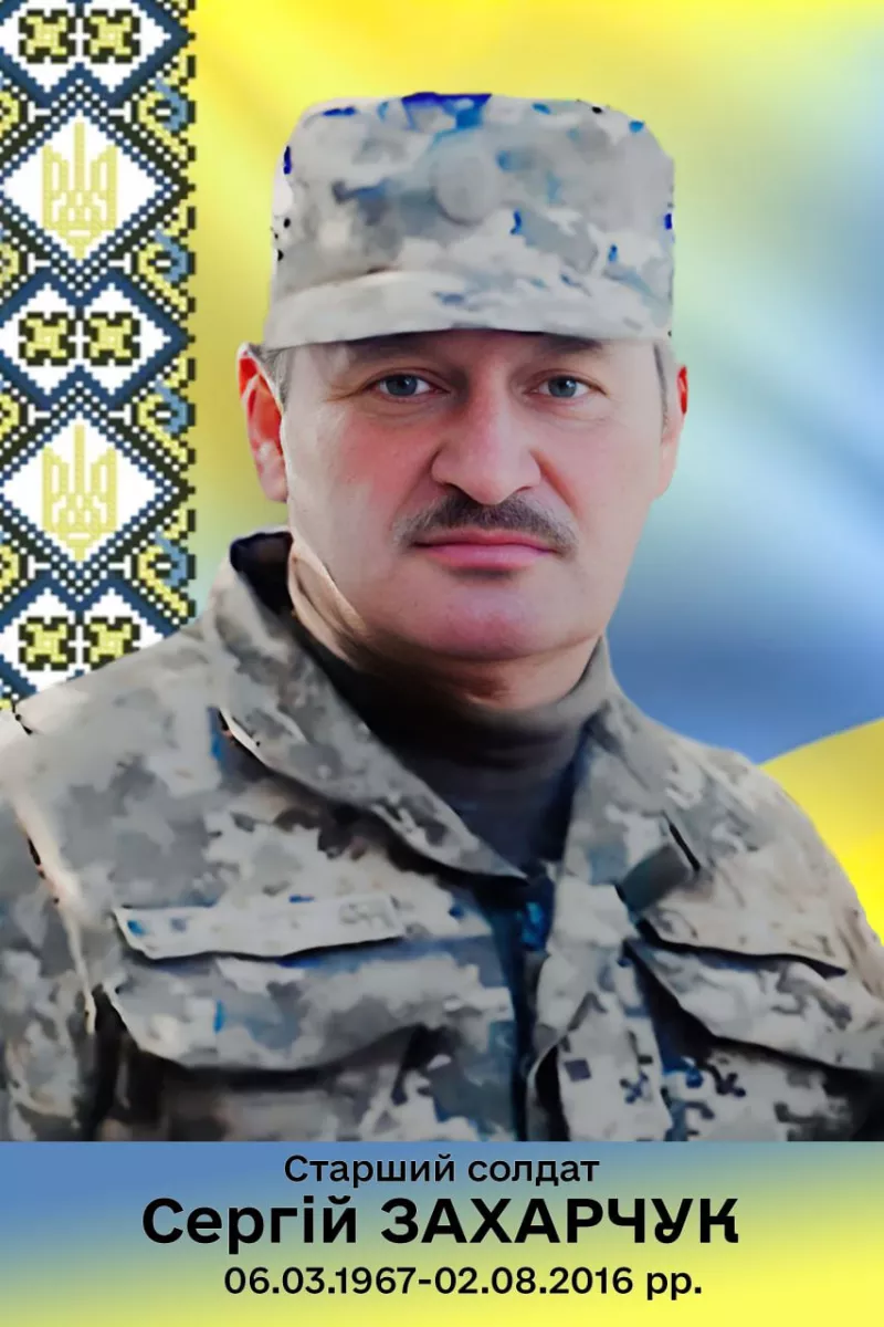 Захарчук Сергій Дмитрович Народився 06.03.1967р. у селі Нераж, Черняхівського району, згодом родина переїхала до села Потіївка. Закінчивши у 1984 році місцеву школу, проходив строкову службу, а по завершенню переїхав у м. Малин. Працював каландрувальником на паперовій фабриці, у вільний від роботи час захоплювався технікою та риболовлею.
