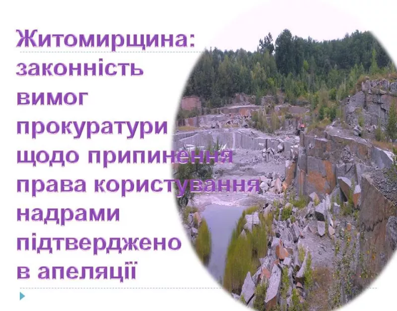 Органи прокуратури Житомирської області, з метою захисту інтересів держави та територіальних громад у сфері надрокористування, постійно вживають заходи представницького характеру.