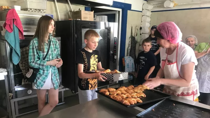 Булочки, які жінки печуть по неділях, йдуть на продаж – їх допомагають продавати учні місцевих шкіл.